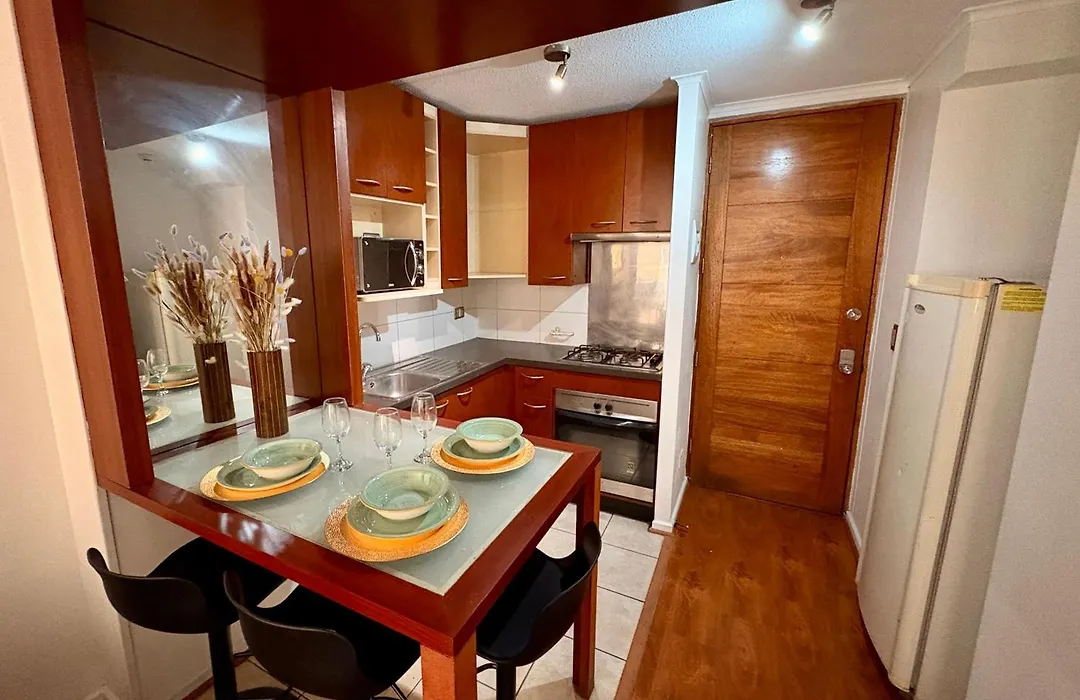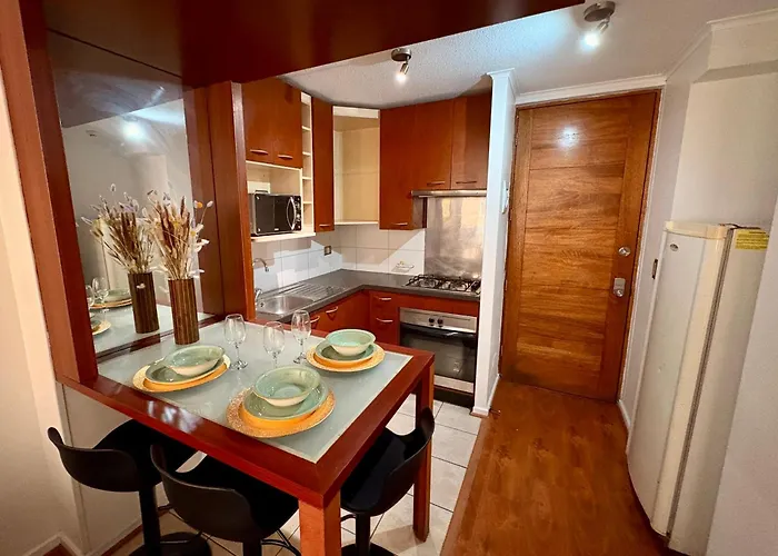 Apartamento A Pasos Del Metro Y Museo Bellas Artes, Cerro Santa Lucia, Barrio Lastarria provides a fully furnished kitchen with all necessary utensils to prepare meals. Avenida Recoleta / Avenida Bellavista bus station is 750 metres away.